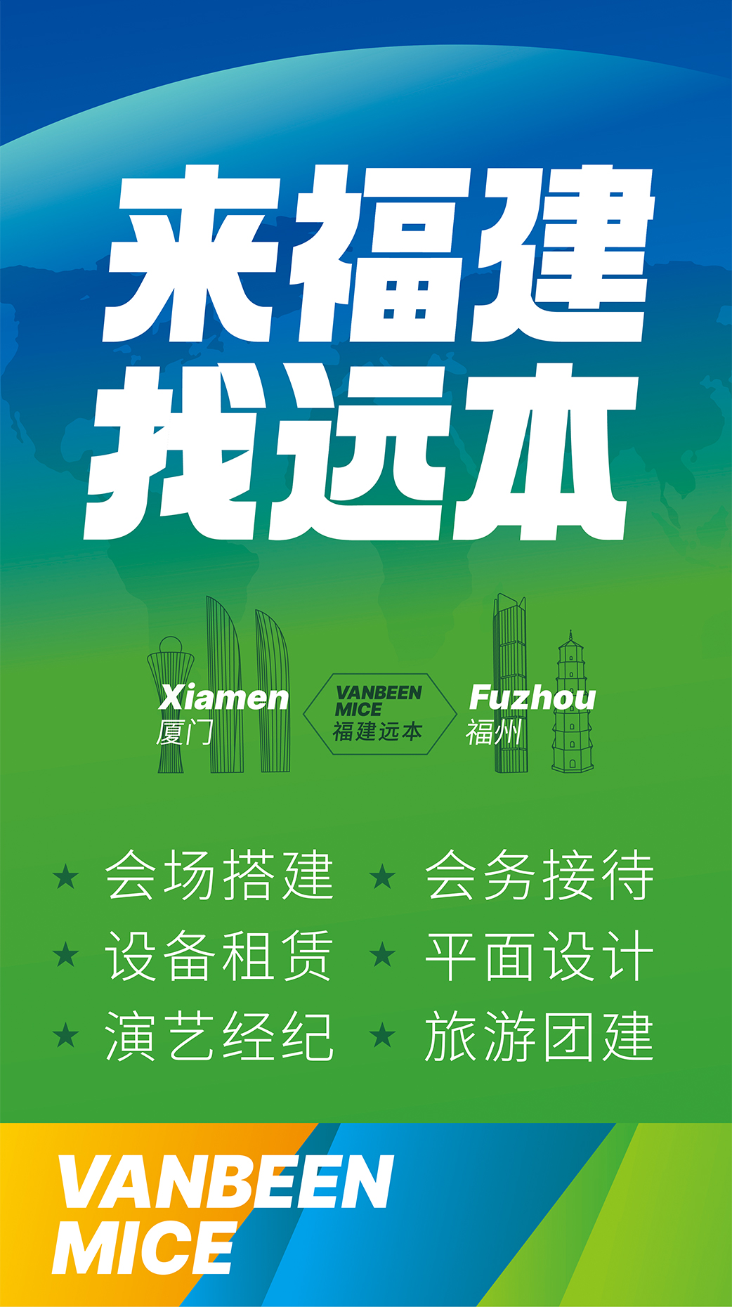 廈門(mén)遠(yuǎn)本成立于2013年,是一家集策劃設(shè)計(jì)、落地搭建以及會(huì)議接待等全案服務(wù)的DMC公司。公司擁有LED屏幕、燈光音響、木作工廠等專業(yè)舞美設(shè)備,擁有一批專業(yè)穩(wěn)定的策劃設(shè)計(jì)和會(huì)務(wù)接待團(tuán)隊(duì),能夠快速、精準(zhǔn)地為客戶提供優(yōu)質(zhì)的策劃、設(shè)計(jì)、搭建、接待等服務(wù)。公司已服務(wù)過(guò)華為、阿里、麥當(dāng)勞、中國(guó)移動(dòng)、埃克森美孚、興業(yè)銀行、招商銀行、華潤(rùn)三九、齊魯制藥、萬(wàn)邦制藥等國(guó)內(nèi)外知名企業(yè),并成功入選中國(guó)國(guó)旅、中旅、康輝國(guó)旅、錦江國(guó)旅、中智商展、墨馬傳媒等國(guó)內(nèi)知名PCO公司供應(yīng)商庫(kù)。